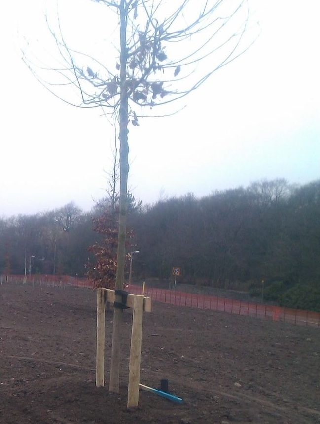 Sevro offer a tree planting service along with any after care if necessary. We also offer ground preparation services like in this photo, where we prepped the ground and planted trees prior to turfing, at a local university site.